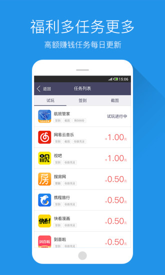 赚客安卓版 分类:安卓游戏中心 大小:1.2MB 开发者:珠海蜂巢网络科技有限公司下载次数:3256最新版本:1.5热度: 作者: 发布: 2020-03-14 10:05:43 支持: Android2.3以上 Tags: 安卓下载 APP截图 应用介绍 赚客,一款让你轻松赚钱的手机APP,新用户安装送3元现金,任务量爆棚的平台,一个能赚8毛,15分钟赚20元,话费,现金10元可提现,24小时闪电到账!赚客每日抽奖秒领现金,实物大奖笔记本、平衡车、音响免费抽!开箱夺宝送iphone,游戏赚钱两不误! 最新应用 乐米资讯 淘金赚 九州江湖录 每天赚点 九州配音师 小龙赚钱 蘑菇乐园 钱大师安卓版 泡泡赚 米赚